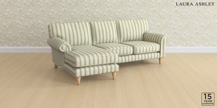 6.12.1 Buy Kingston by Laura Ashley Medium Sofa Chaise - Left Hand Kinsham Stripe Hedgerow Green Low Turned - Light Oak from the Next UK online shop Click here to use our accessible website