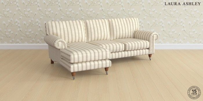 6.12.1 Buy Kingston by Laura Ashley Medium Sofa Chaise - Left Hand Kinsham Stripe Natural Low Chrome Castor - Teak from the Next UK online shop Click here to use our accessible website