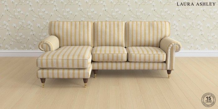 7.0.3 Buy Kingston by Laura Ashley Medium Sofa Chaise - Left Hand Kinsham Stripe Ochre Yellow Low Brass Castor - Chestnut from the Next UK online shop Click here to use our accessible website
