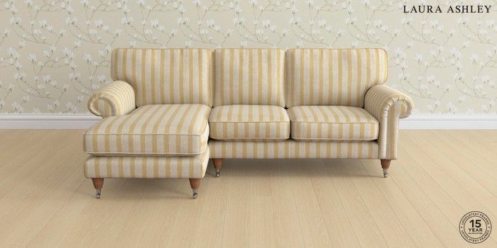 7.0.3 Buy Kingston by Laura Ashley Medium Sofa Chaise - Left Hand Kinsham Stripe Ochre Yellow Low Chrome Castor - Teak from the Next UK online shop Click here to use our accessible website