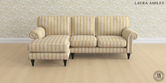 7.0.3 Buy Kingston by Laura Ashley Medium Sofa Chaise - Left Hand Kinsham Stripe Ochre Yellow Low Turned - Black from the Next UK online shop Click here to use our accessible website