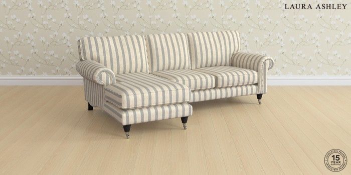 6.12.1 Buy Kingston by Laura Ashley Medium Sofa Chaise - Left Hand Kinsham Stripe Seaspray Blue Low Chrome Castor - Black from the Next UK online shop Click here to use our accessible website