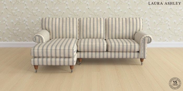 6.12.1 Buy Kingston by Laura Ashley Medium Sofa Chaise - Left Hand Kinsham Stripe Seaspray Blue Low Chrome Castor - Teak from the Next UK online shop Click here to use our accessible website