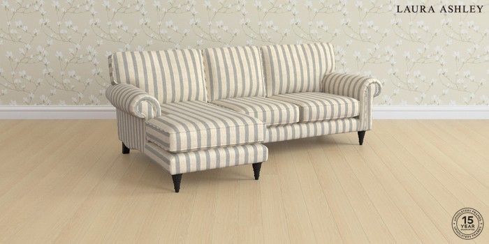 6.12.1 Buy Kingston by Laura Ashley Medium Sofa Chaise - Left Hand Kinsham Stripe Seaspray Blue Low Turned - Black from the Next UK online shop Click here to use our accessible website