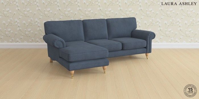 6.12.1 Buy Kingston by Laura Ashley Medium Sofa Chaise - Left Hand Lundar Chenille Navy Blue Low Brass Castor - Light Oak from the Next UK online shop Click here to use our accessible website