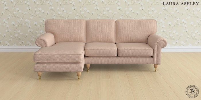6.12.1 Buy Kingston by Laura Ashley Medium Sofa Chaise - Left Hand Melbreak Geo Chalk Pink Low Brass Castor - Light Oak from the Next UK online shop Click here to use our accessible website