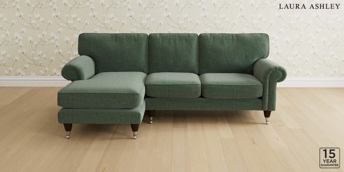 6.12.1 Buy Kingston by Laura Ashley Medium Sofa Chaise - Left Hand Nantmor Fern Green Low Brass Castor - Chestnut from the Next UK online shop Click here to use our accessible website