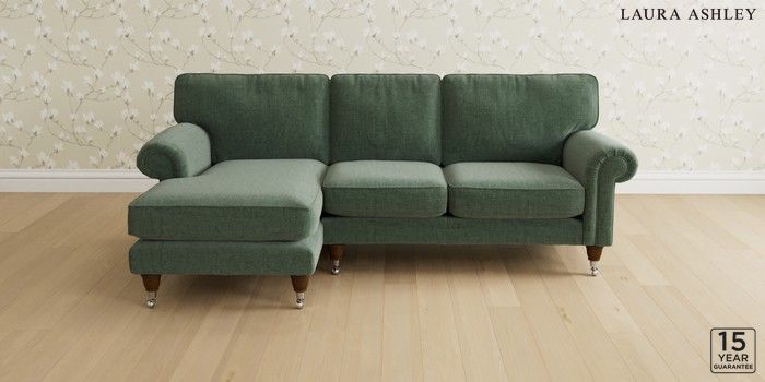 6.12.1 Buy Kingston by Laura Ashley Medium Sofa Chaise - Left Hand Nantmor Fern Green Low Chrome Castor - Teak from the Next UK online shop Click here to use our accessible website