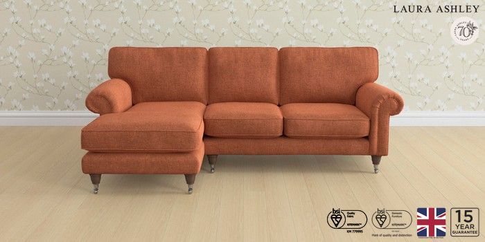 6.12.1 Buy Kingston by Laura Ashley Medium Sofa Chaise - Left Hand Nantmor Rust Orange Low Chrome Castor - Chestnut from the Next UK online shop Click here to use our accessible website