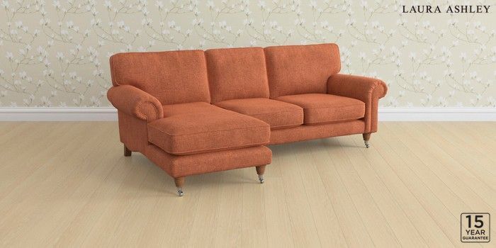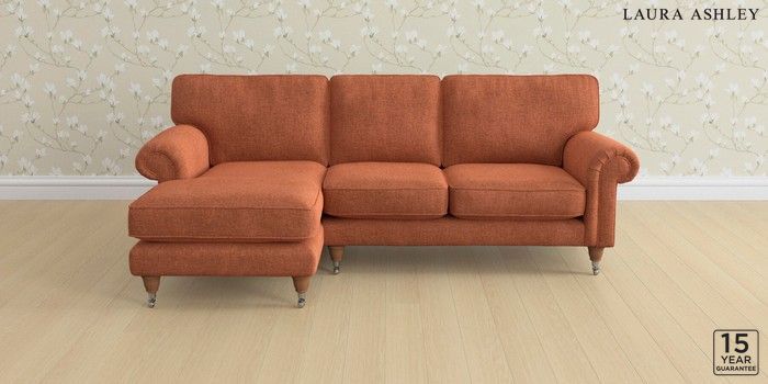 6.12.1 Buy Kingston by Laura Ashley Medium Sofa Chaise - Left Hand Nantmor Rust Orange Low Chrome Castor - Teak from the Next UK online shop Click here to use our accessible website