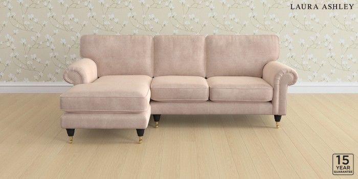 6.12.1 Buy Kingston by Laura Ashley Medium Sofa Chaise - Left Hand Orla Chalk Pink Low Brass Castor - Black from the Next UK online shop Click here to use our accessible website