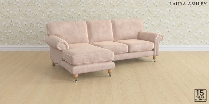 6.12.13 Buy Kingston by Laura Ashley Medium Sofa Chaise - Left Hand Orla Chalk Pink Low Chrome Castor - Light Oak from the Next UK online shop Click here to use our accessible website