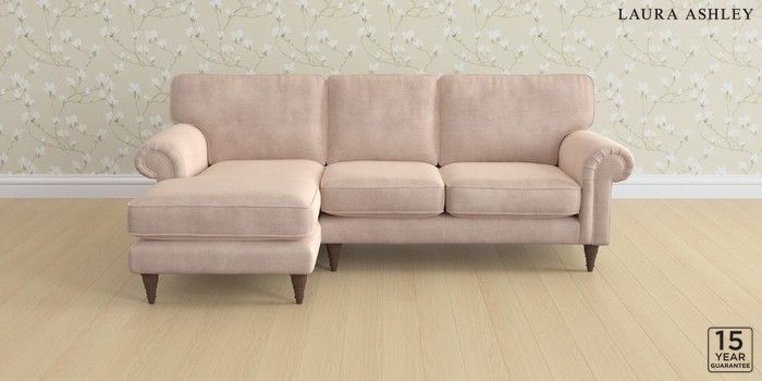 6.12.13 Buy Kingston by Laura Ashley Medium Sofa Chaise - Left Hand Orla Chalk Pink Low Turned - Chestnut from the Next UK online shop Click here to use our accessible website
