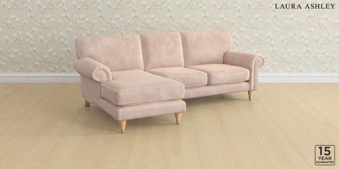 6.12.13 Buy Kingston by Laura Ashley Medium Sofa Chaise - Left Hand Orla Chalk Pink Low Turned - Light Oak from the Next UK online shop Click here to use our accessible website