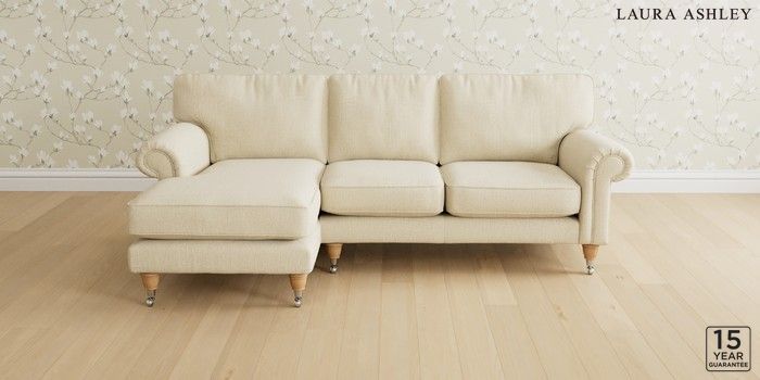 6.12.13 Buy Kingston by Laura Ashley Medium Sofa Chaise - Left Hand Orla Oyster Natural Low Chrome Castor - Light Oak from the Next UK online shop Click here to use our accessible website