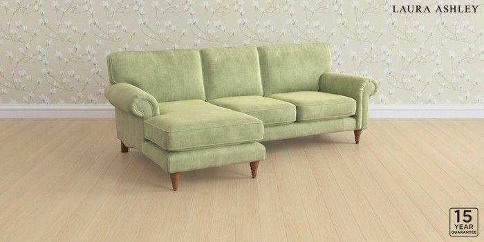 6.12.1 Buy Kingston by Laura Ashley Medium Sofa Chaise - Left Hand Orla Pale Hedgerow Green Low Turned - Teak from the Next UK online shop Click here to use our accessible website