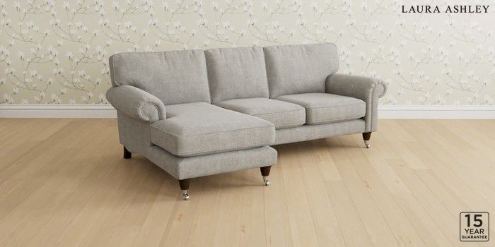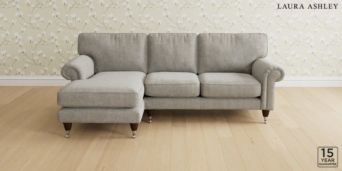 6.12.1 Buy Kingston by Laura Ashley Medium Sofa Chaise - Left Hand Orla Pale Steel Grey Low Chrome Castor - Chestnut from the Next UK online shop Click here to use our accessible website