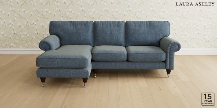 6.12.1 Buy Kingston by Laura Ashley Medium Sofa Chaise - Left Hand Orla Seaspray Blue Low Chrome Castor - Chestnut from the Next UK online shop Click here to use our accessible website