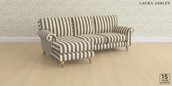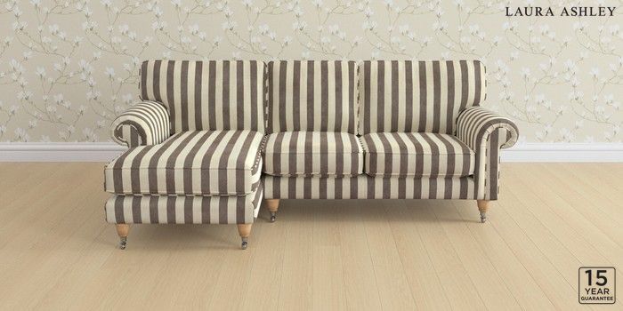 6.12.13 Buy Kingston by Laura Ashley Medium Sofa Chaise - Left Hand Orla Stripe Dark Truffle Natural Low Chrome Castor - Light Oak from the Next UK online shop Click here to use our accessible website