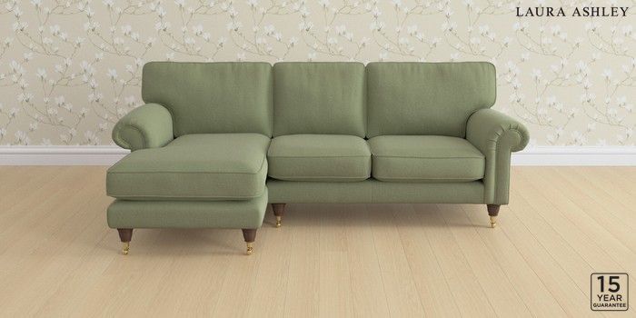 6.12.1 Buy Kingston by Laura Ashley Medium Sofa Chaise - Left Hand Peyton Hedgerow Green Low Brass Castor - Chestnut from the Next UK online shop Click here to use our accessible website
