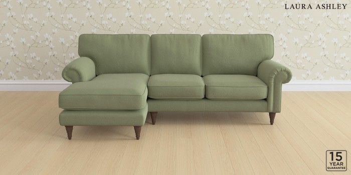 6.12.1 Buy Kingston by Laura Ashley Medium Sofa Chaise - Left Hand Peyton Hedgerow Green Low Turned - Chestnut from the Next UK online shop Click here to use our accessible website