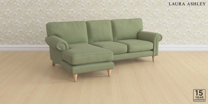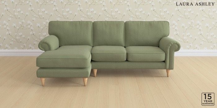 6.12.1 Buy Kingston by Laura Ashley Medium Sofa Chaise - Left Hand Peyton Hedgerow Green Low Turned - Light Oak from the Next UK online shop Click here to use our accessible website