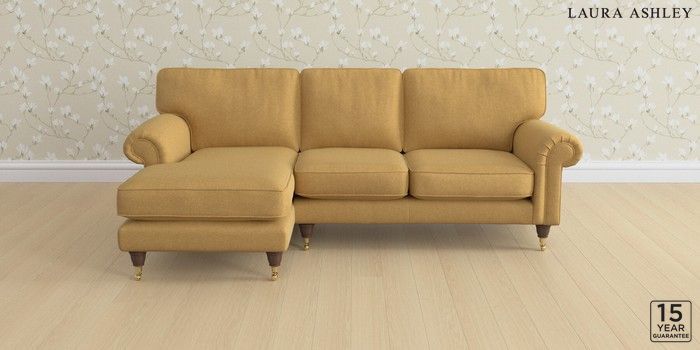 6.12.1 Buy Kingston by Laura Ashley Medium Sofa Chaise - Left Hand Peyton Ochre Yellow Low Brass Castor - Chestnut from the Next UK online shop Click here to use our accessible website