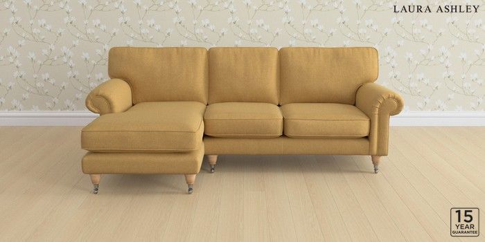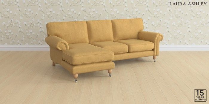 6.12.1 Buy Kingston by Laura Ashley Medium Sofa Chaise - Left Hand Peyton Ochre Yellow Low Chrome Castor - Light Oak from the Next UK online shop Click here to use our accessible website