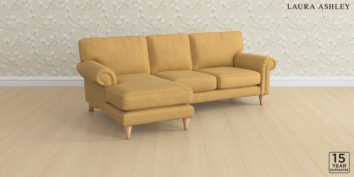 6.12.1 Buy Kingston by Laura Ashley Medium Sofa Chaise - Left Hand Peyton Ochre Yellow Low Turned - Light Oak from the Next UK online shop Click here to use our accessible website