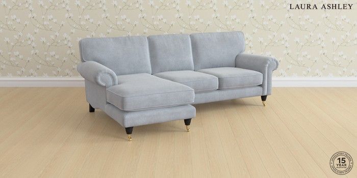 6.12.1 Buy Kingston by Laura Ashley Medium Sofa Chaise - Left Hand Peyton Powder Blue Low Brass Castor - Black from the Next UK online shop Click here to use our accessible website