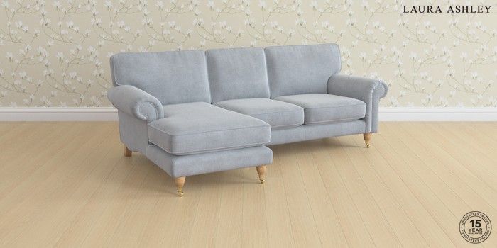 6.12.1 Buy Kingston by Laura Ashley Medium Sofa Chaise - Left Hand Peyton Powder Blue Low Brass Castor - Light Oak from the Next UK online shop Click here to use our accessible website