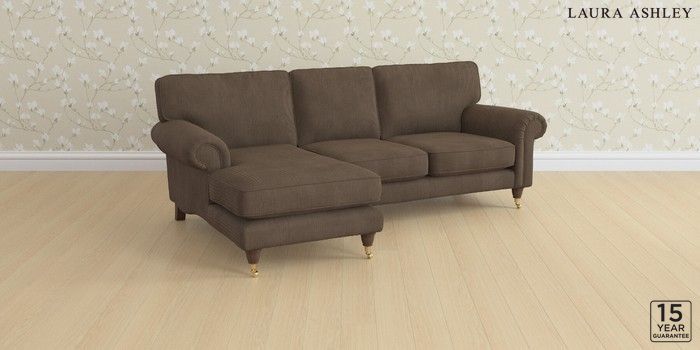 6.12.1 Buy Kingston by Laura Ashley Medium Sofa Chaise - Left Hand Sinclair Cord Chocolate Brown Low Brass Castor - Chestnut from the Next UK online shop Click here to use our accessible website