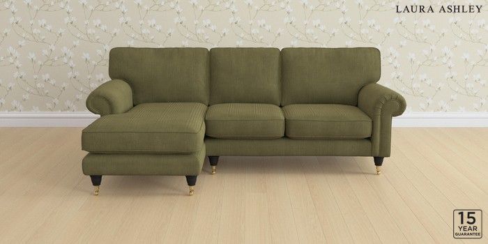 6.12.1 Buy Kingston by Laura Ashley Medium Sofa Chaise - Left Hand Sinclair Cord Ivy Green Low Brass Castor - Black from the Next UK online shop Click here to use our accessible website