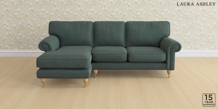 6.12.1 Buy Kingston by Laura Ashley Medium Sofa Chaise - Left Hand Wooton Forest Green Low Brass Castor - Light Oak from the Next UK online shop Click here to use our accessible website