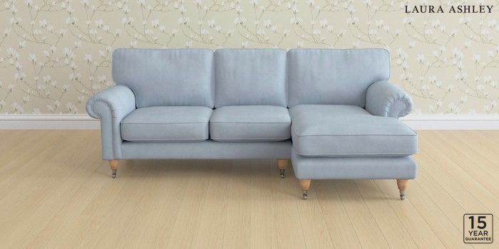 6.12.1 Buy Kingston by Laura Ashley Medium Sofa Chaise - Right Hand Ailsworth Newport Blue Low Chrome Castor - Light Oak from the Next UK online shop Click here to use our accessible website