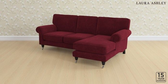 6.12.1 Buy Kingston by Laura Ashley Medium Sofa Chaise - Right Hand Alwyn Velvet Burgundy Red Low Chrome Castor - Black from the Next UK online shop Click here to use our accessible website