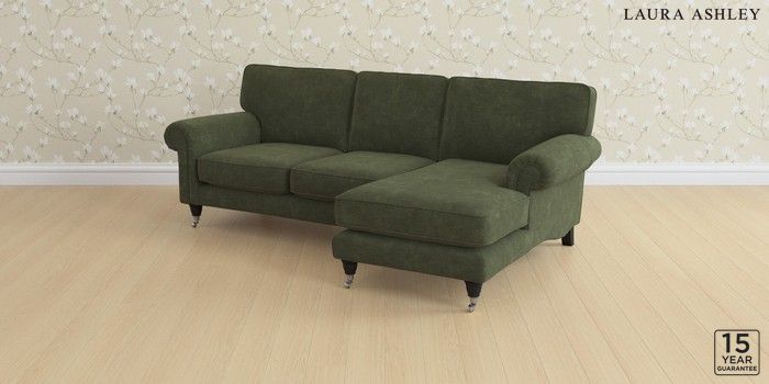 6.12.1 Buy Kingston by Laura Ashley Medium Sofa Chaise - Right Hand Alwyn Velvet Ivy Green Low Chrome Castor - Black from the Next UK online shop Click here to use our accessible website