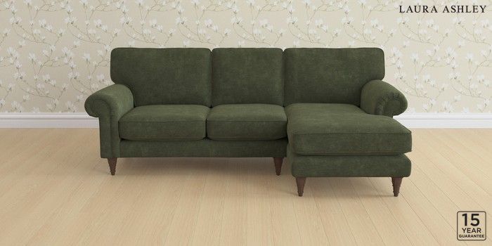 6.12.1 Buy Kingston by Laura Ashley Medium Sofa Chaise - Right Hand Alwyn Velvet Ivy Green Low Turned - Chestnut from the Next UK online shop Click here to use our accessible website