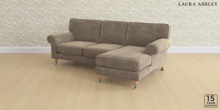 6.12.1 Buy Kingston by Laura Ashley Medium Sofa Chaise - Right Hand Alwyn Velvet Truffle Natural Low Chrome Castor - Light Oak from the Next UK online shop Click here to use our accessible website
