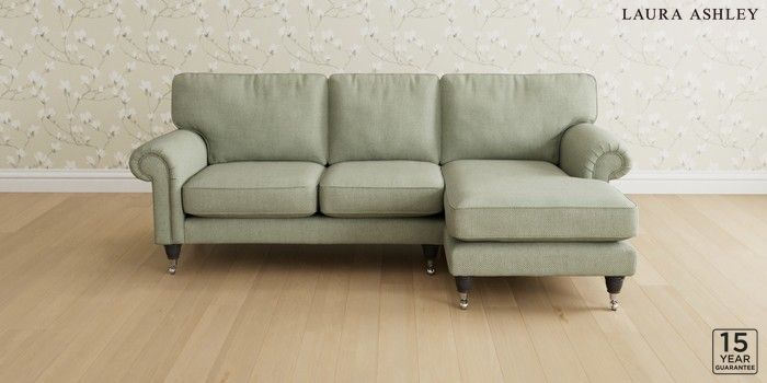 6.12.1 Buy Kingston by Laura Ashley Medium Sofa Chaise - Right Hand Anneliese Sage Green Low Chrome Castor - Black from the Next UK online shop Click here to use our accessible website