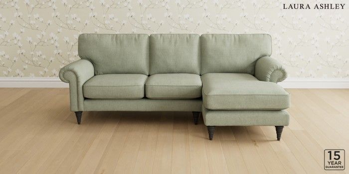 6.12.1 Buy Kingston by Laura Ashley Medium Sofa Chaise - Right Hand Anneliese Sage Green Low Turned - Black from the Next UK online shop Click here to use our accessible website