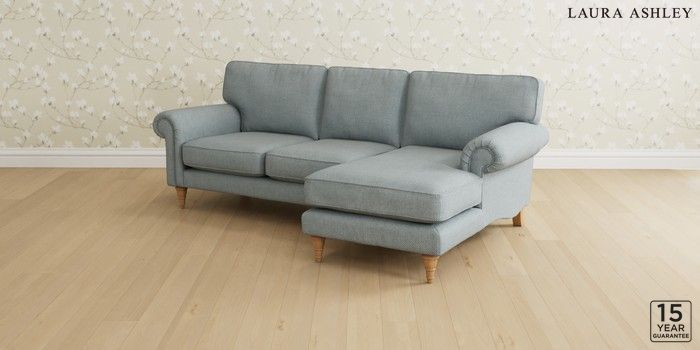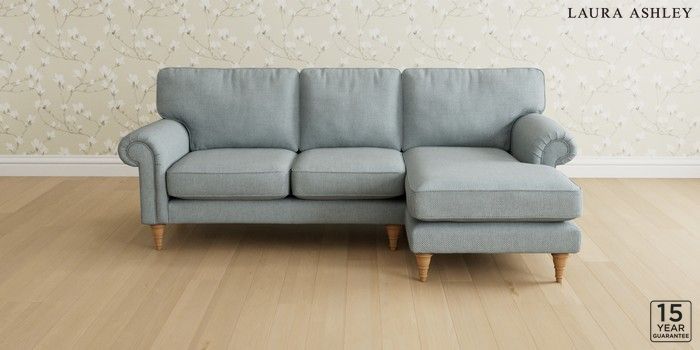 6.12.1 Buy Kingston by Laura Ashley Medium Sofa Chaise - Right Hand Anneliese Seaspray Blue Low Turned - Light Oak from the Next UK online shop Click here to use our accessible website