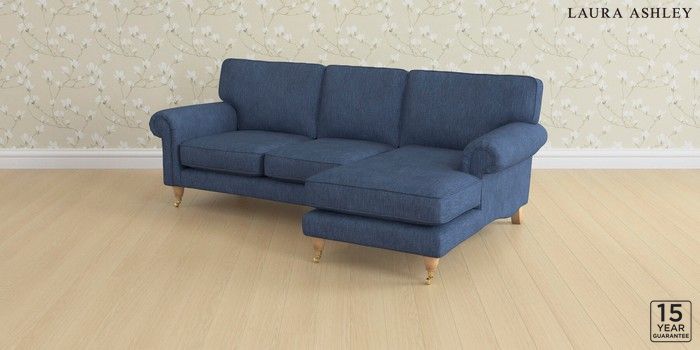 6.12.1 Buy Kingston by Laura Ashley Medium Sofa Chaise - Right Hand Bainton Midnight Navy Low Brass Castor - Light Oak from the Next UK online shop Click here to use our accessible website