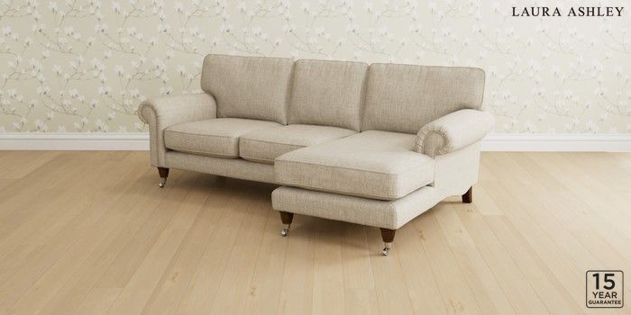 6.12.1 Buy Kingston by Laura Ashley Medium Sofa Chaise - Right Hand Bainton Natural Low Brass Castor - Teak from the Next UK online shop Click here to use our accessible website