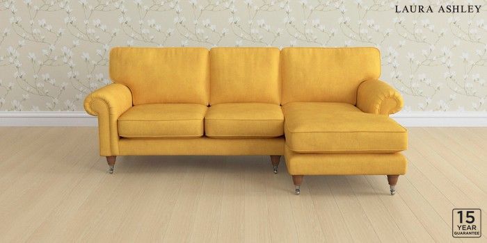 6.12.1 Buy Kingston by Laura Ashley Medium Sofa Chaise - Right Hand Bainton Ochre Yellow Low Chrome Castor - Teak from the Next UK online shop Click here to use our accessible website