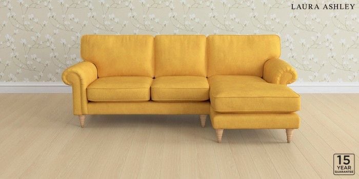 6.12.1 Buy Kingston by Laura Ashley Medium Sofa Chaise - Right Hand Bainton Ochre Yellow Low Turned - Light Oak from the Next UK online shop Click here to use our accessible website