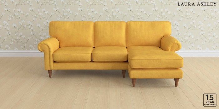 6.12.1 Buy Kingston by Laura Ashley Medium Sofa Chaise - Right Hand Bainton Ochre Yellow Low Turned - Teak from the Next UK online shop Click here to use our accessible website
