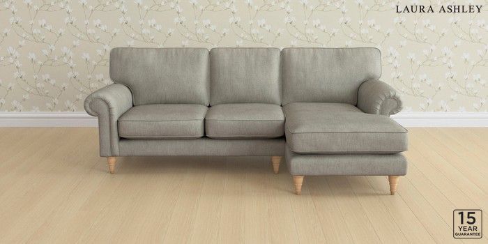 6.12.1 Buy Kingston by Laura Ashley Medium Sofa Chaise - Right Hand Bainton Pale Steel Grey Low Turned - Light Oak from the Next UK online shop Click here to use our accessible website