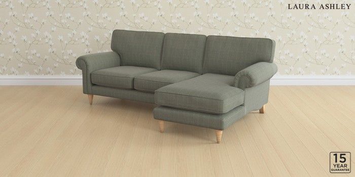6.12.13 Buy Kingston by Laura Ashley Medium Sofa Chaise - Right Hand Birchgrove Check Olive Green Low Turned - Light Oak from the Next UK online shop Click here to use our accessible website