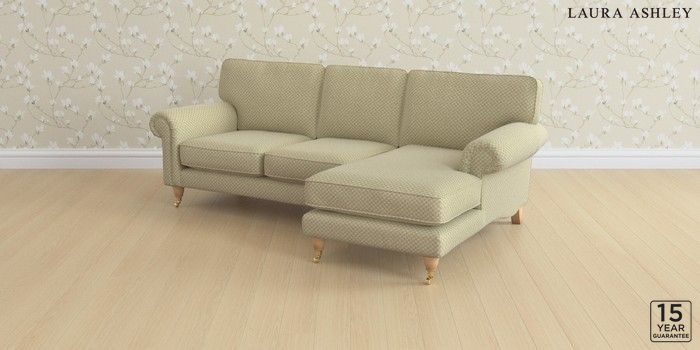 6.12.1 Buy Kingston by Laura Ashley Medium Sofa Chaise - Right Hand Chequers Hedgerow Green Low Brass Castor - Light Oak from the Next UK online shop Click here to use our accessible website